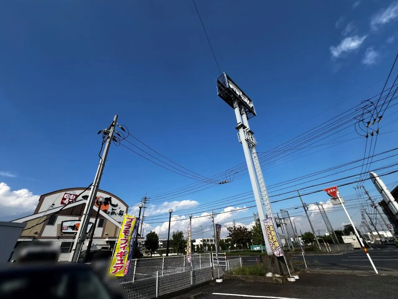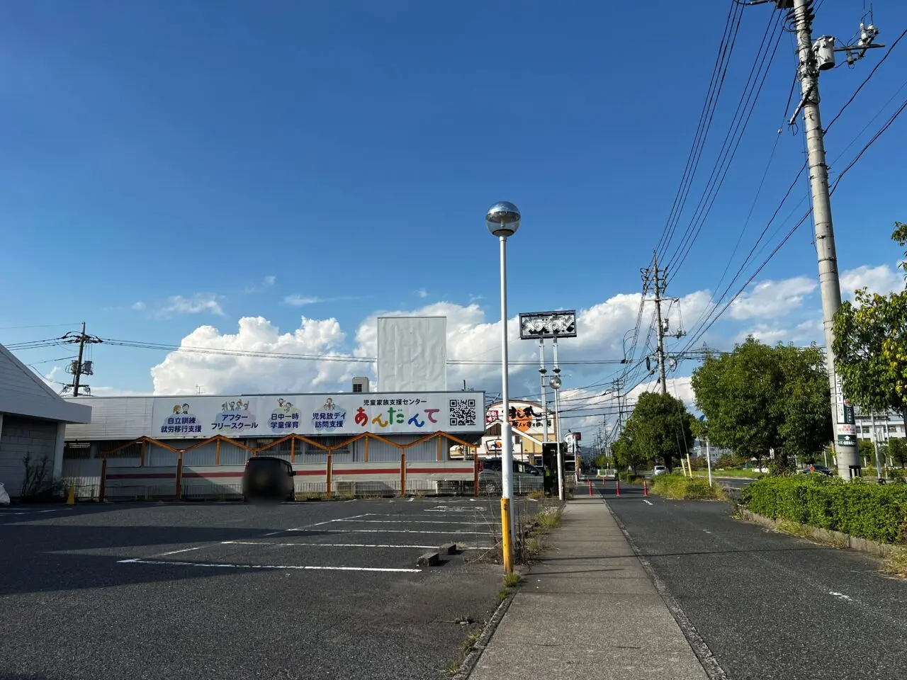 新しくオープン(メディオ! 倉敷沖新店)の場所から北を見ると、現店舗の看板が見えています。