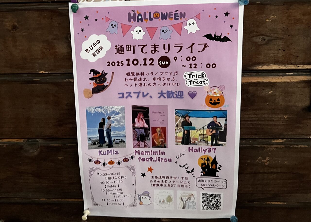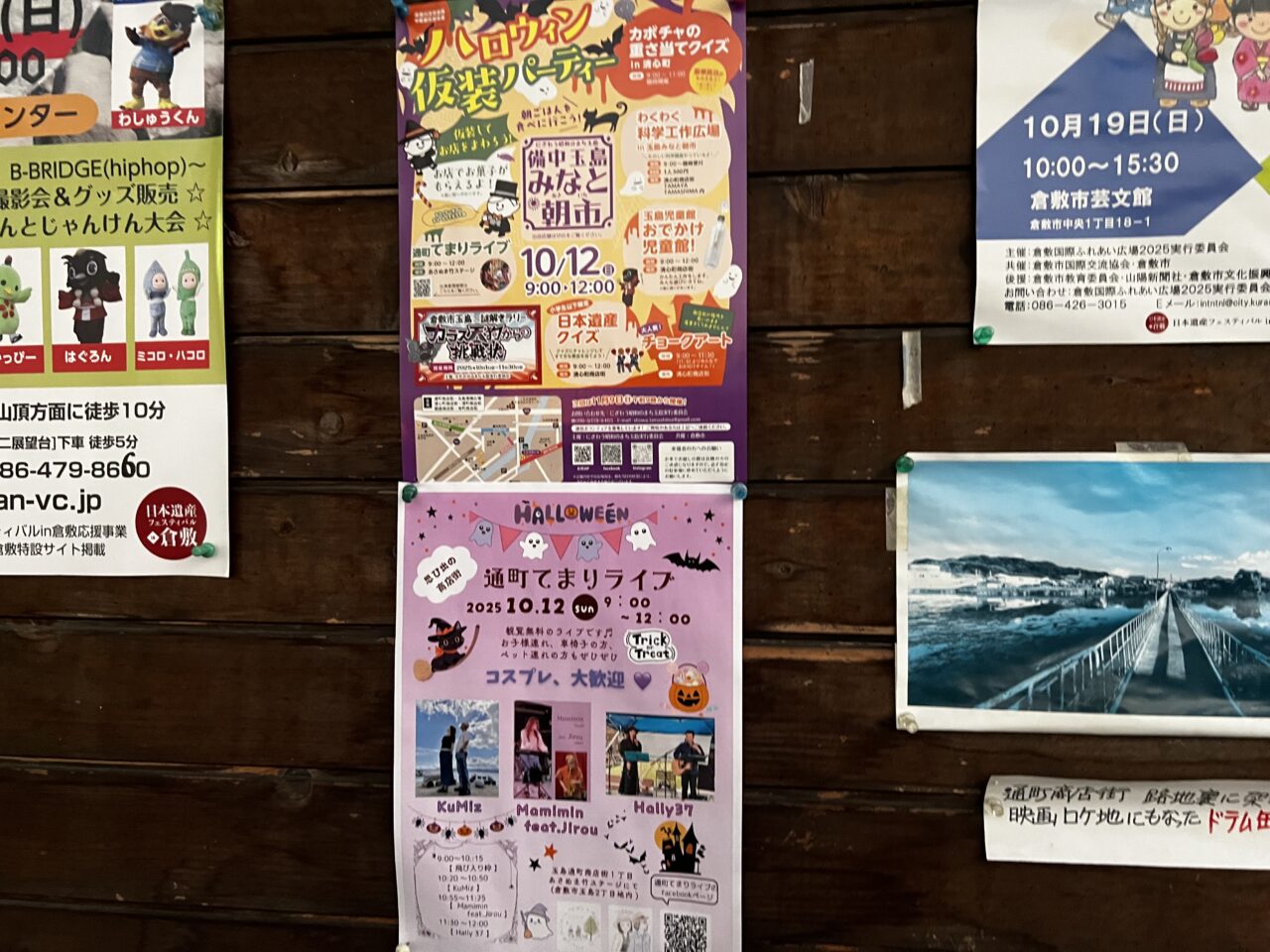 2025年10月12日(日)は毎月恒例の「備中玉島みなと朝市」の開催日です。10月は「ハロウィン仮装パーティ」がテーマとなっています。仮装してお店を回るとお菓子がもらえるそうです。「トリック・オア・トリート」って言ってね。(数に限りがあります)