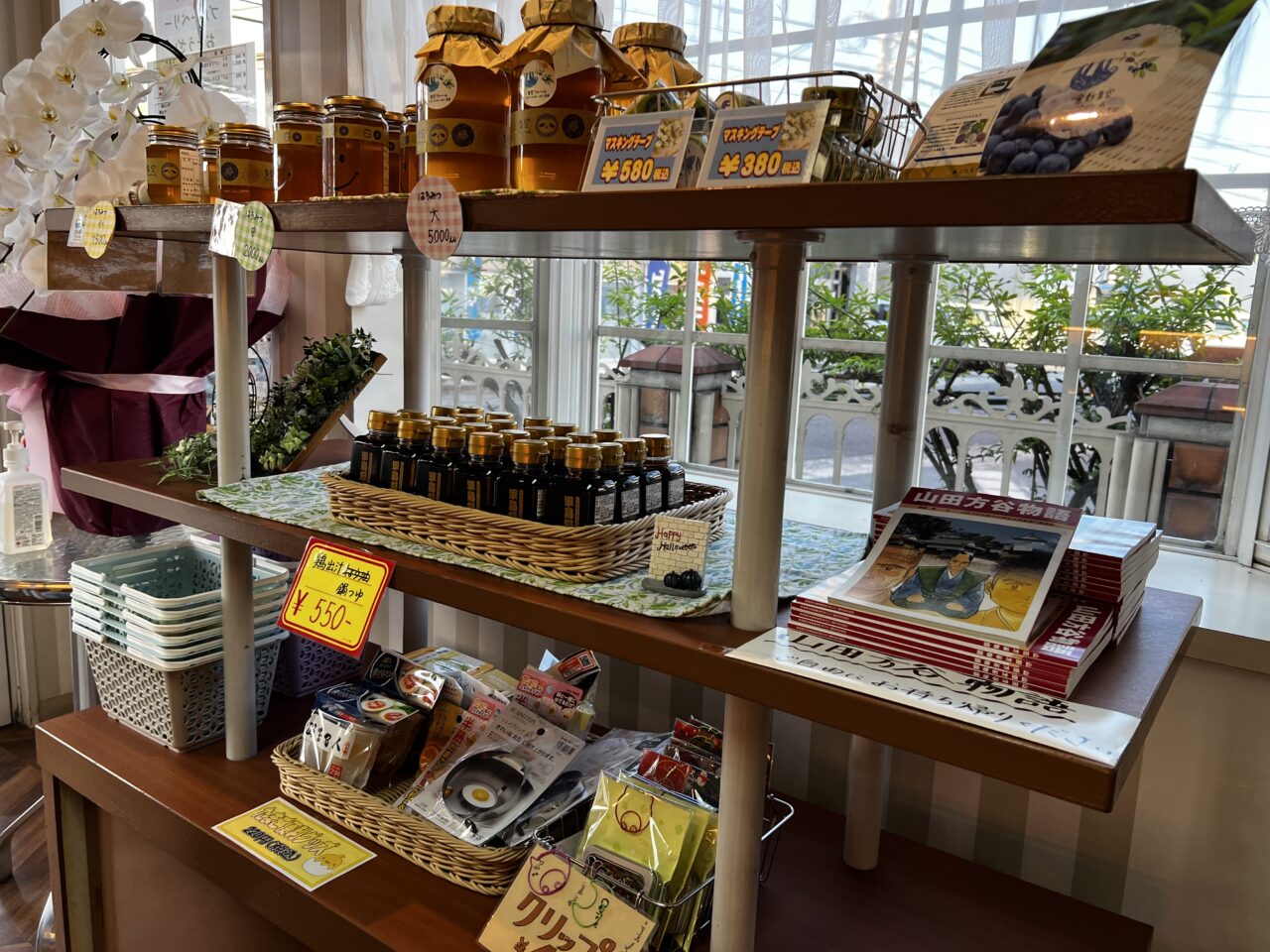 こちらのコーナーには、鶏出汁の鍋つゆ(¥550税込)、はちみつもあります。はちみつは大(5,000円税込・中(2,000円税込)・小(1,500円税込)の三種類ありました。他にもマスキングテープ、たまご便利グッズ、クリップなどがありました。