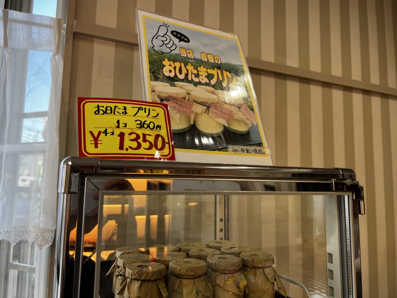 お日たまプリンは、1コ360円(税込)4コで1,350円(税込)となっているので4コ買うとお得です。