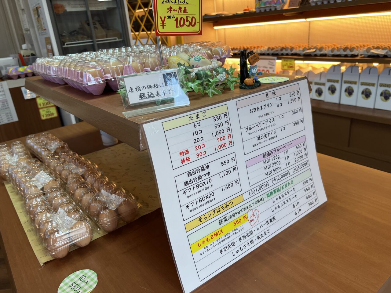 こちらのたまごは「お日たま 津山産直」で、20コ入り1,050円(税込)です。