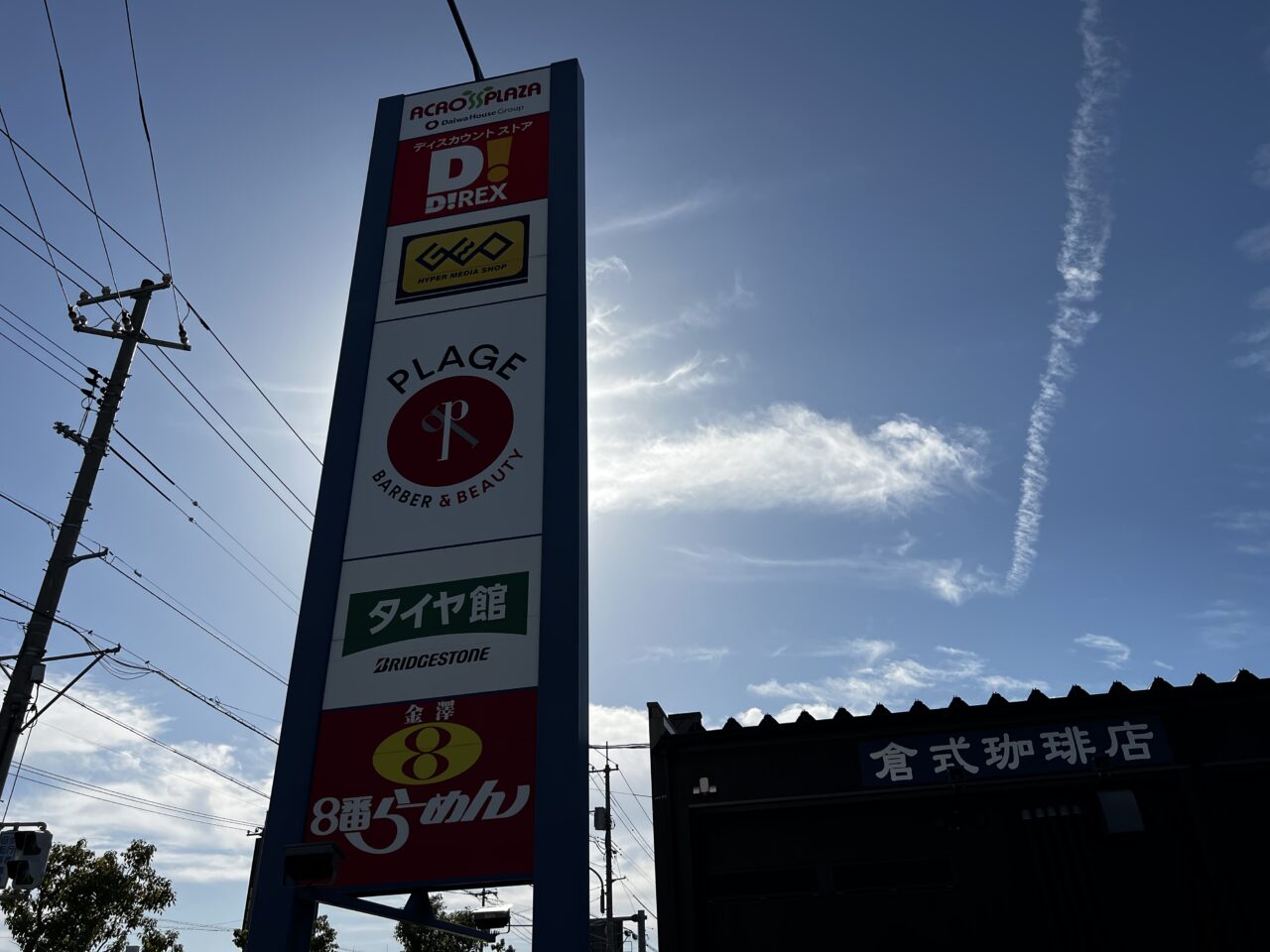 アクロスプラザ児島には、GEO・ダイレックス・理容美容プラージュ・ダイソー・タイヤ館・金澤豚骨醬油8番らーめんもあります。