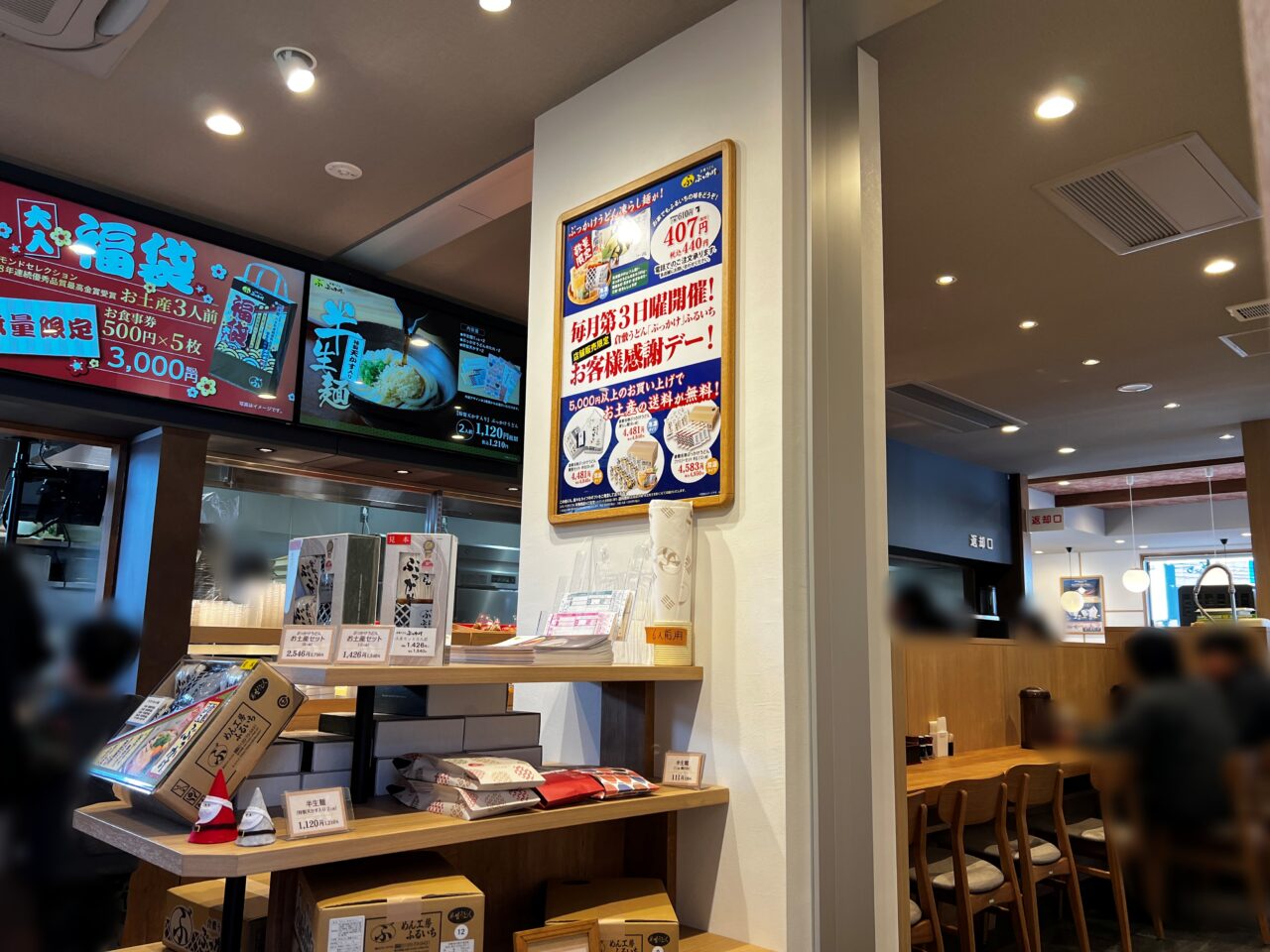 うどん以外に「ぜんざい鯛焼き」や「ふーまん」も販売されています。