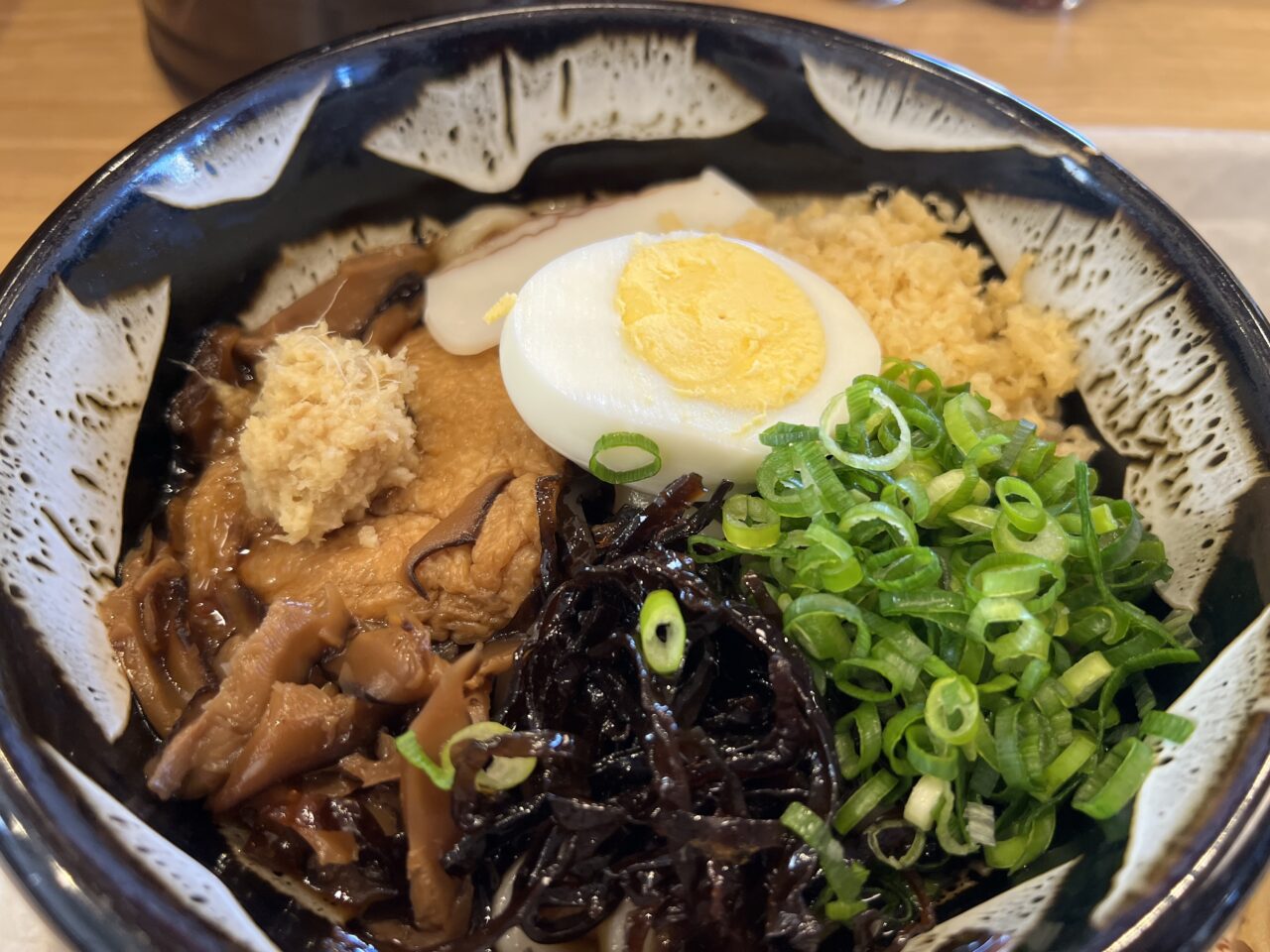 うどんは「きざみぶっかけ温」です。生姜を入れても良いか聞かれましたので入れてくださいとお願いいました。美味しかったです。