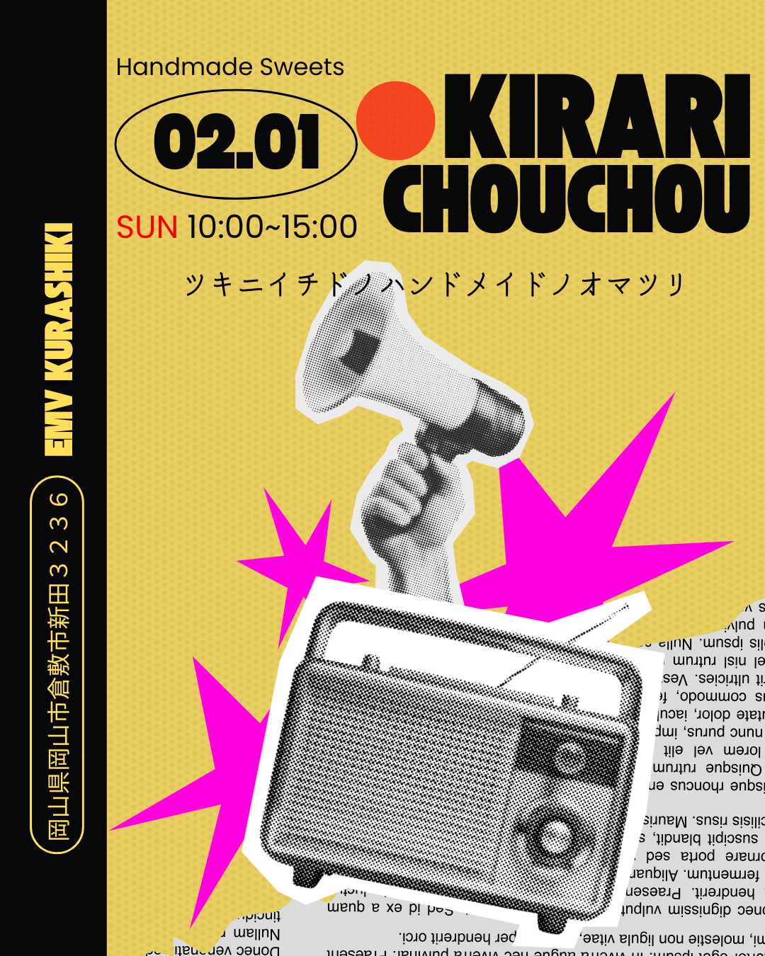 【倉敷市】1月は中止になってしまった「キラリシュシュ」が2月1日(日)開催予定
